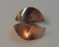It is done by hammering the metal on a sinusoidal (snake-shaped) stake, compressing the center of the sheet and stretching its edges. This forces two sides to curl under and two sides to curve upward, resulting in the classic anticlastic form, shown to the right.